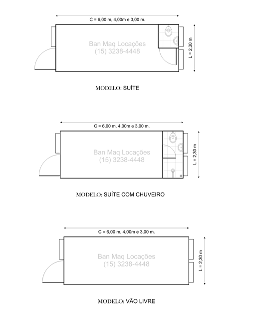 O módulo alojamento pode ser modelo vão livre ou suíte com banheiro e ponto para chuveiro.